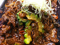 ・熊本名物馬肉を赤酒で甘辛く炊いて、混ぜご飯にしています。